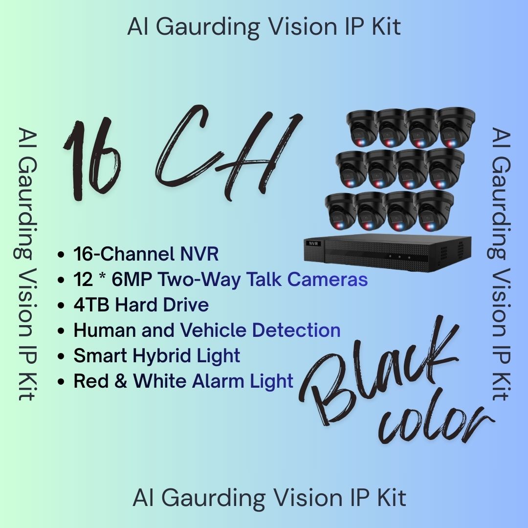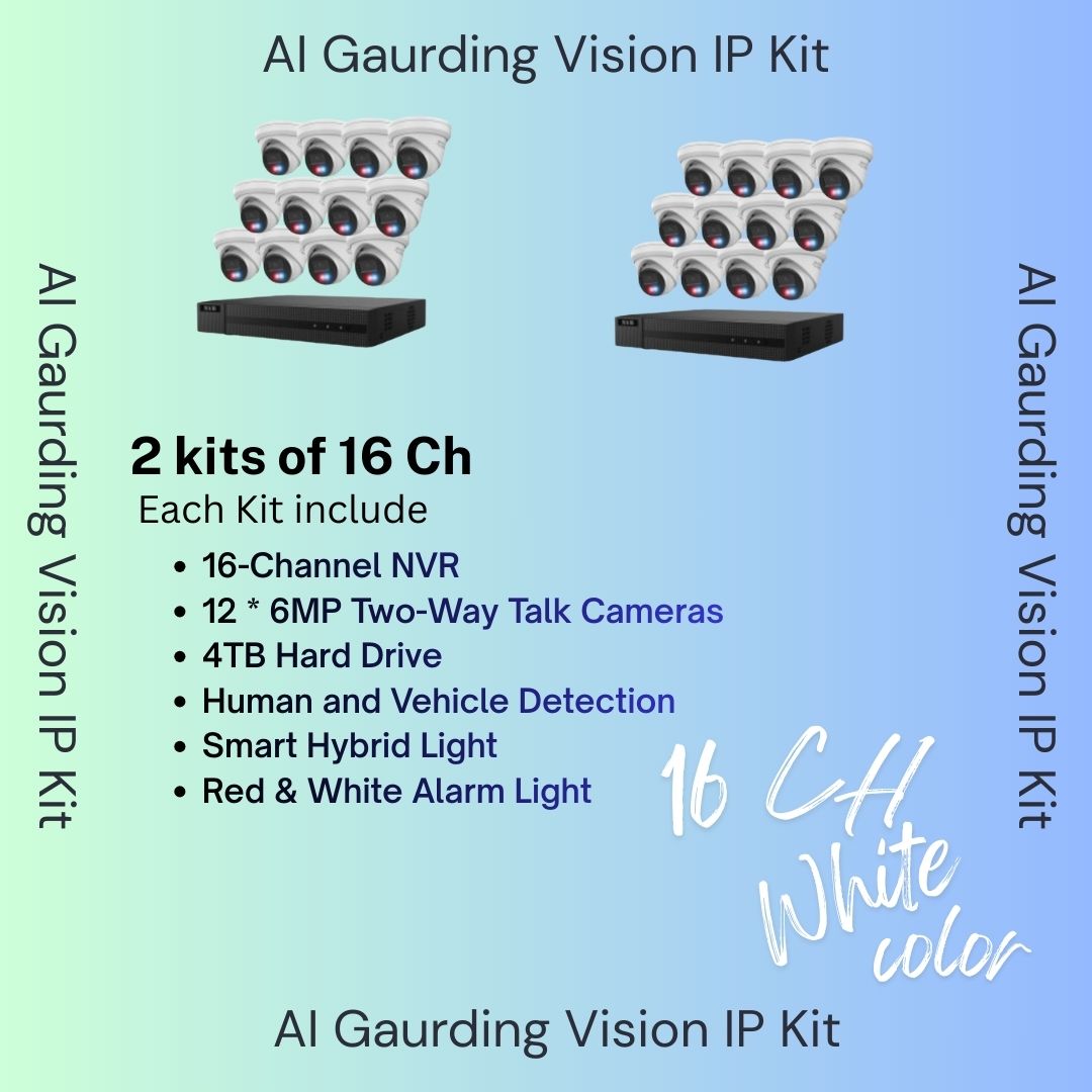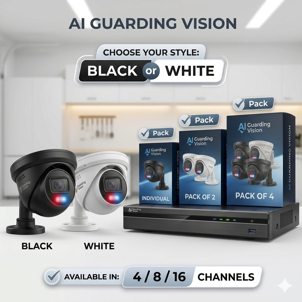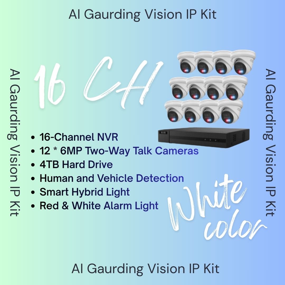 AI Guarding Vision 6MP Security System: 4/8/16 Channel NVR Kits with Active Deterrence Turret Cameras, Red/Blue Flashing Lights, Two-Way Audio, and 2TB/4TB HDD – Available in Black or White