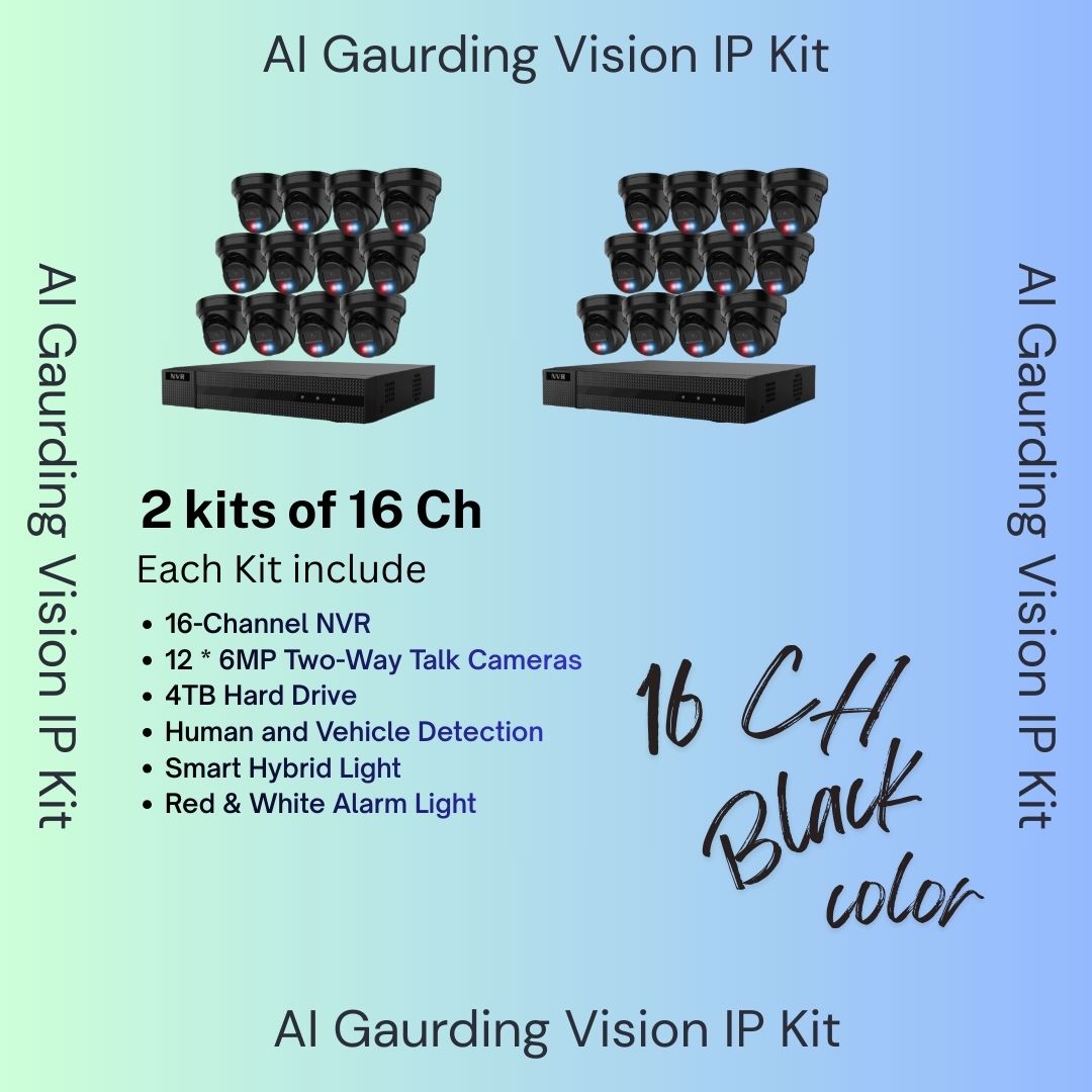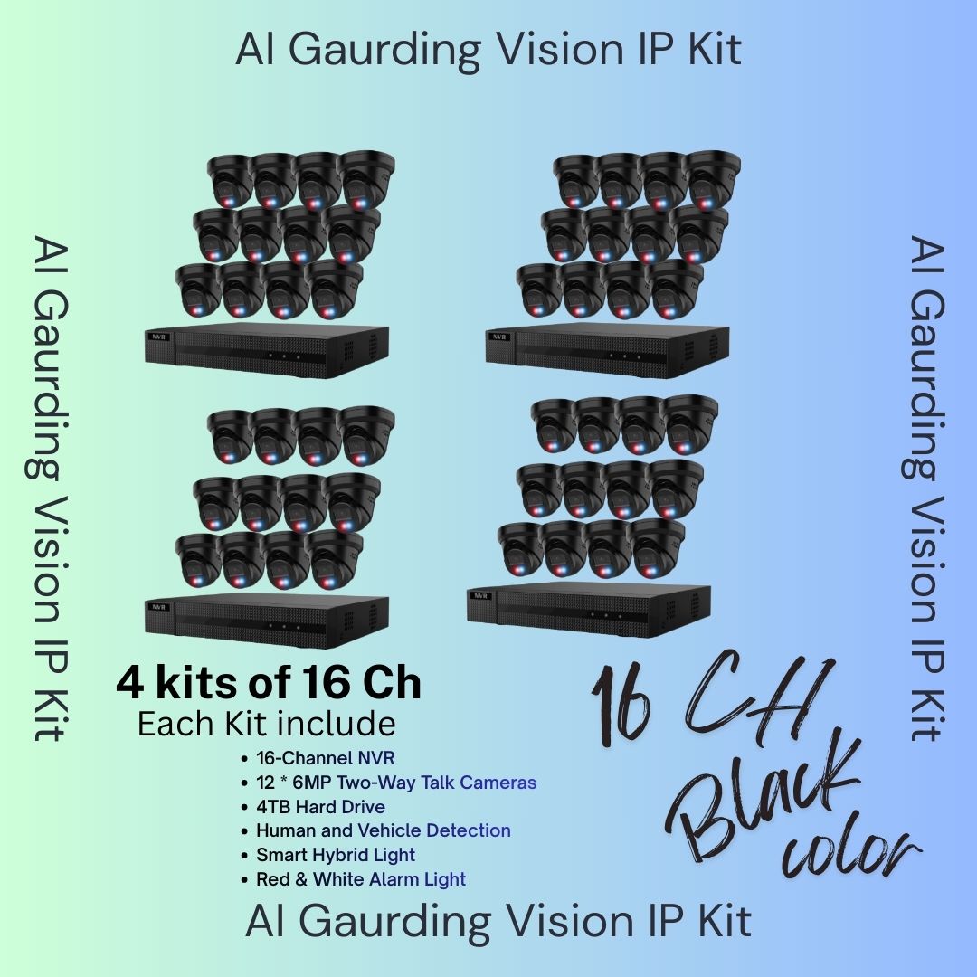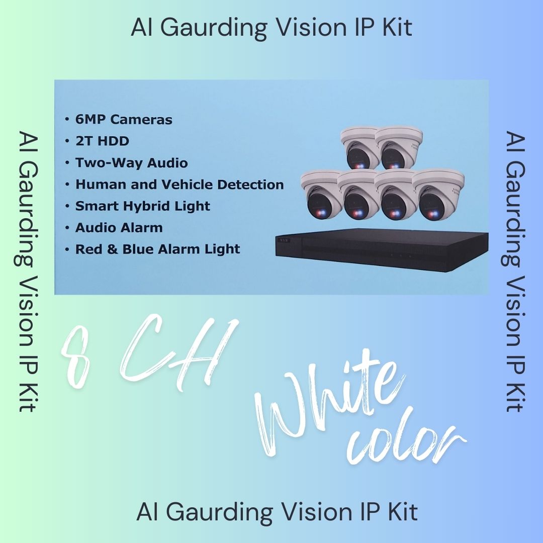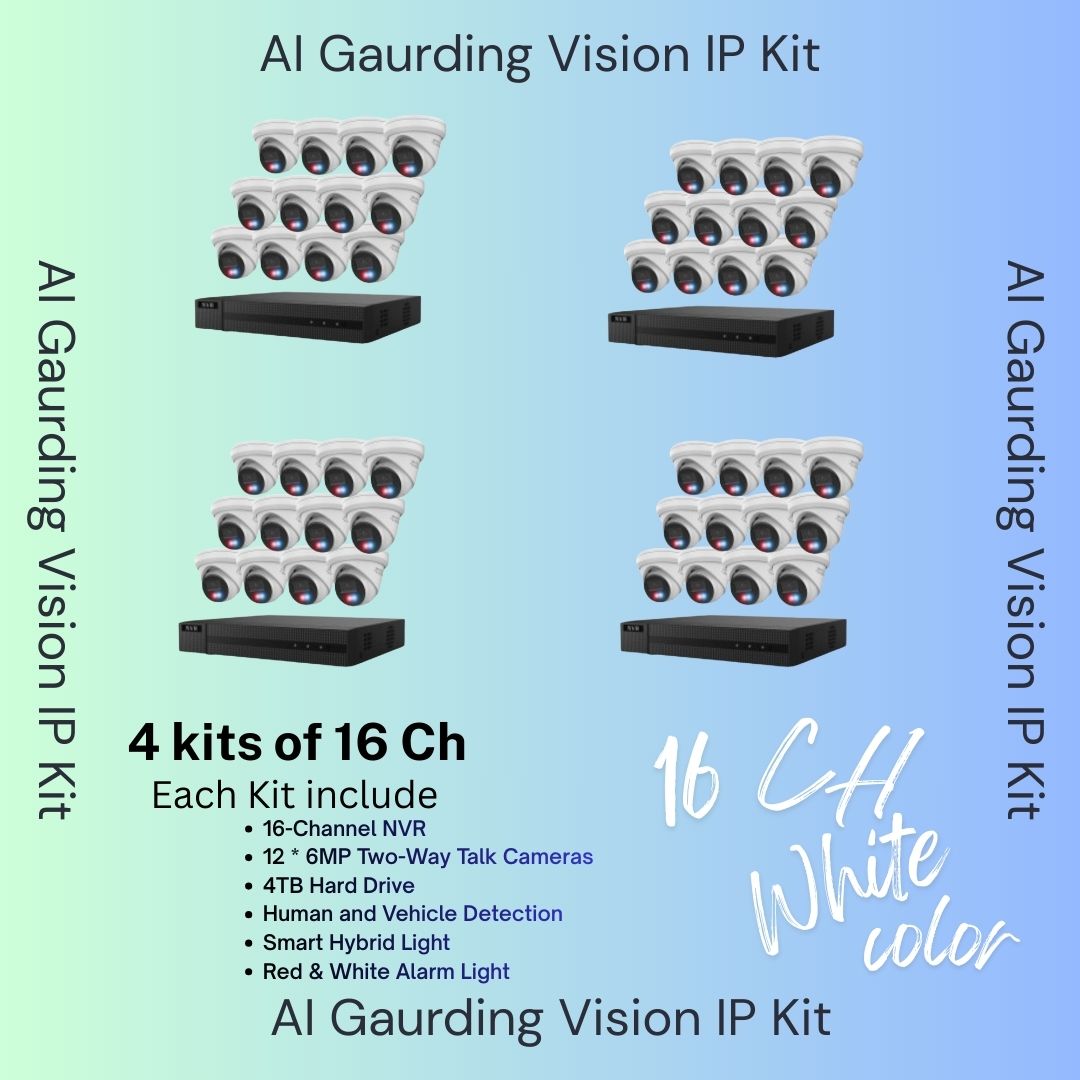 AI Guarding Vision 6MP Security System: 4/8/16 Channel NVR Kits with Active Deterrence Turret Cameras, Red/Blue Flashing Lights, Two-Way Audio, and 2TB/4TB HDD – Available in Black or White