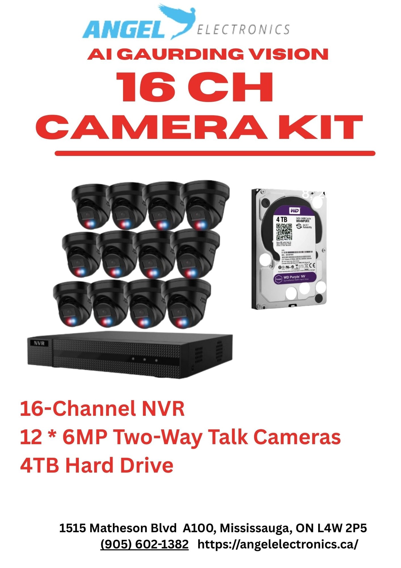 Cameras: 12 x 6MP AI Two-Way Talk Color Cameras